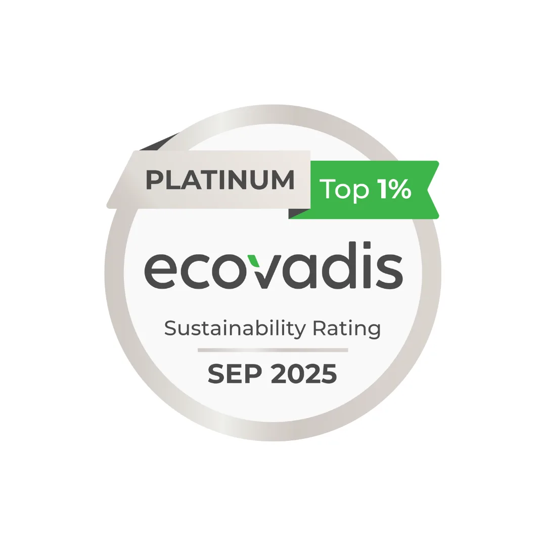 EcoVadis, la referencia mundial en calificaciones de sostenibilidad corporativa, ha vuelto a reconocer a nuestra empresa con la medalla de platino, situándonos entre el 1% de las empresas más responsables del mundo.
